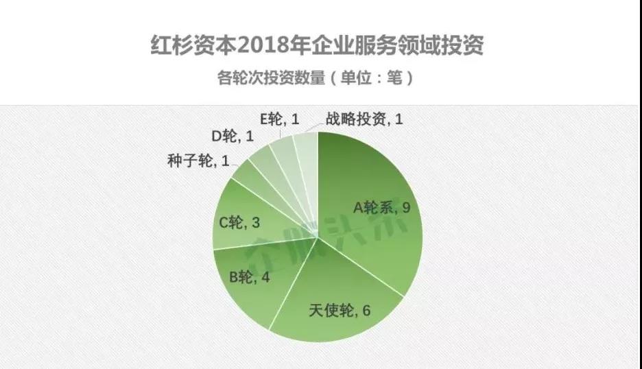 投资轮次集中在A轮、天使轮和B轮比较多,覆盖范围较广。像今年HR SaaS北森的E轮融资,知识产品信息服务商智慧芽的C轮融资,都获得了红杉的参投。